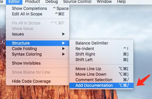 注意:Xcode8内置了开启注释的功能,位置在这里