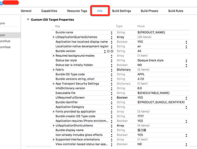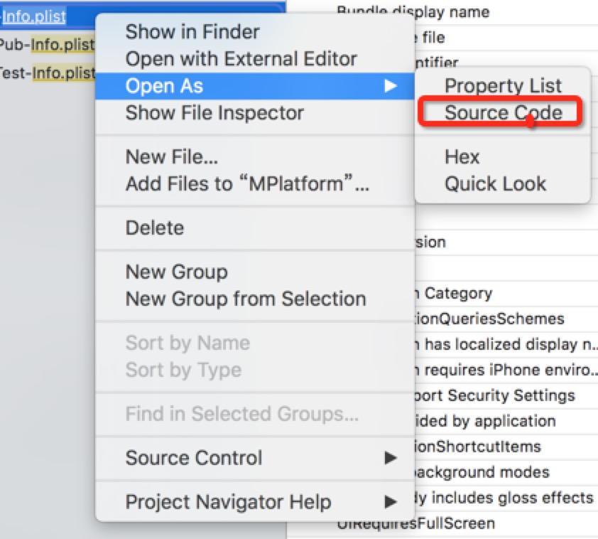 也可以找到info.plist文件,然后使用SourceCode方式打开: