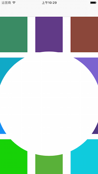初始化path路径以collectionView的四边画一个路径,然后加入一个以collectionView的中心为圆点,半径为50的路径,显示的区域就为两个路径之间的区域。