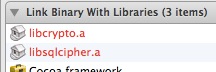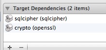 SQLCipher uses the widely trusted and peer-reviewed OpenSSL library for all cryptographic functions including the AES-256 algorithm, pseudo random number generation, and PBKDF2 key derivation. OpenSSL isn't framework that is usable directly on the iPhone so we will setup our project to build and link against it as a static library.