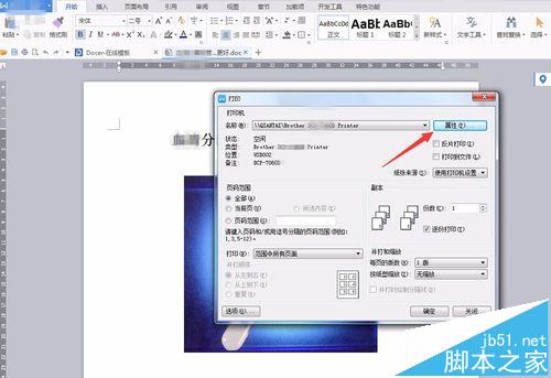 1、如果只是某一次想用单次打印,平时都用双面打印的可以采用这种方法。在打开的文档中,点击打印,然后在弹出的界面,点击属性。
