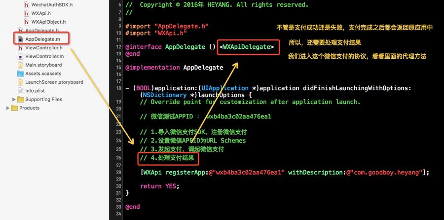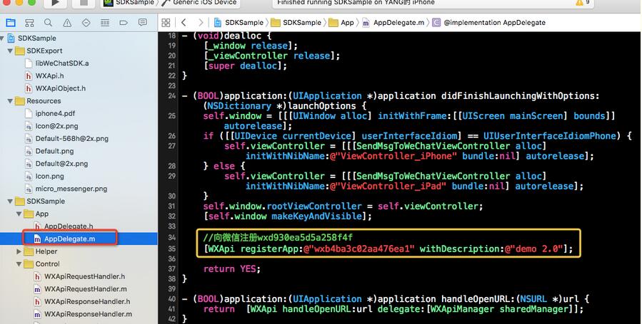 然后我们导入这个头文件之后,直接根据已经有的APPID进行注册: