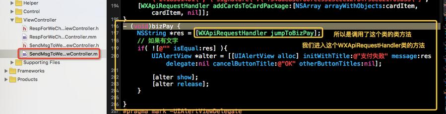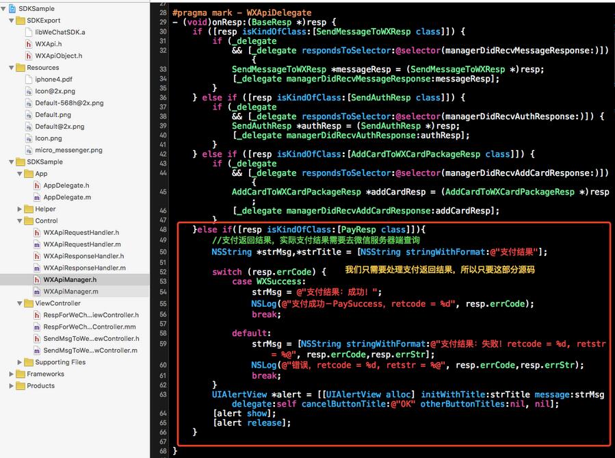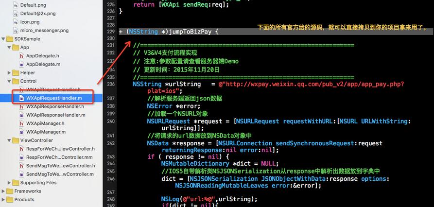 最后我们找到了Demo中完整的可以直接用的这部分发起微信支付的源码: