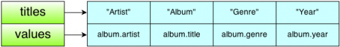 return @{@"titles":@[@"Artist", @"Album", @"Genre", @"Year"],
