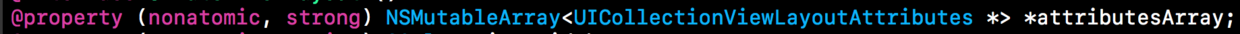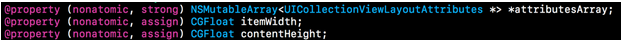 通过上边的三个方法名我们可以大致了解需要去做什么.说一下第二个方法,需要返回一个数组,数组存放布局属性(UICollectionViewLayoutAttributes)对象.那么我们需要写一个属性数组(attributesArray),将布局属性放入这个属性数组并返回.