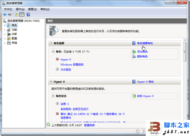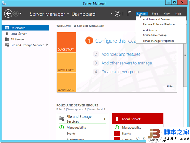 管理:这里可以添加、删除角色和功能,添加服务器及创建服务器组。