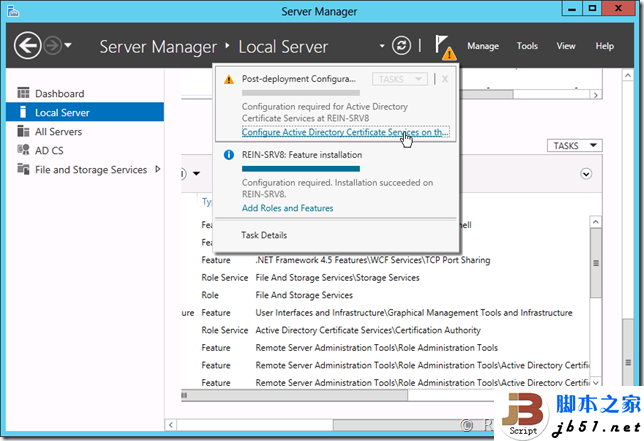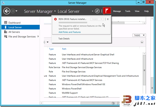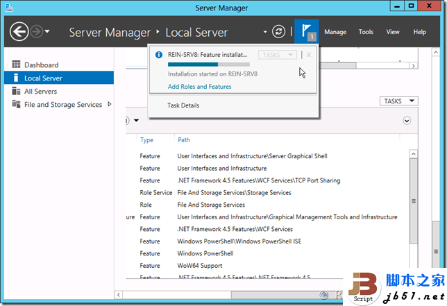 这样的功能意味着可以同时安装多个功能或添加多个角色,并且不需要一直僵持在安装界面,在完成时或需要配置时会进行提醒。接下来再看看左侧,左侧相比旧版本的Server也发生了非常大的变化,变得非常的简洁,只有四个大块,分别是仪表板、本地服务器、所有服务器以及文件和存储服务。