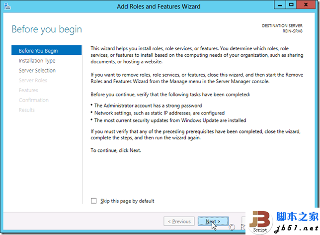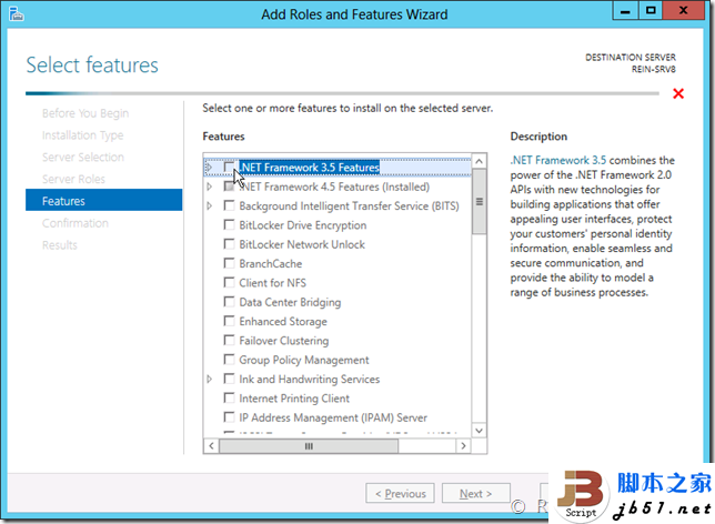 整个服务器管理器差不多就这样了,下面来看一个实例,是用添加角色和功能向导添加.NET Framework 3.5的一个过程。首先打开添加角色或功能向导,会显示介绍,与旧版本的也完全不一样了。