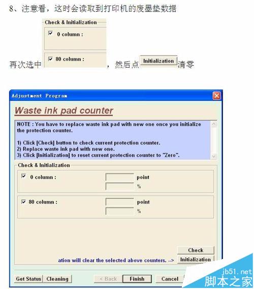 5、弹出的窗口中,把选项都勾选。然后点check ,check检查后,会出现检测情况,再选中窗口 再点清零 initialization