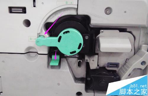 将碳粉设备的绿色前盖旋转到开锁状态,然后按下绿色杠杆,向外就可以拔出碳粉盒了,这时就可以轻松的添加或更换碳粉了。