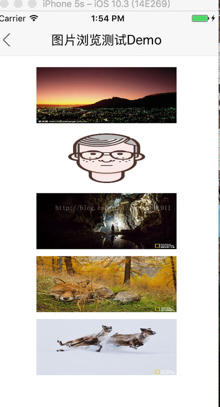 目的:通过kingfisher请求5张图片,展示出来。然后利用图片放大缩小管理类展示图片,多张图片可以滑动浏览