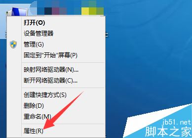 右键点击桌面的【计算机】图标,选择【属性】选项