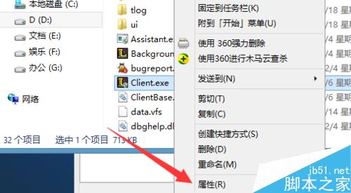 找到LOL的安装路径下的登录程序,也就是client.exe,右键点击选择【属性】选项