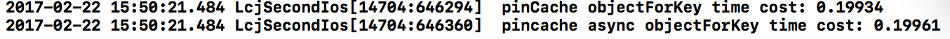 NSLog(@" pinCache objectForKey time cost: %0.5f", end1 - start1);