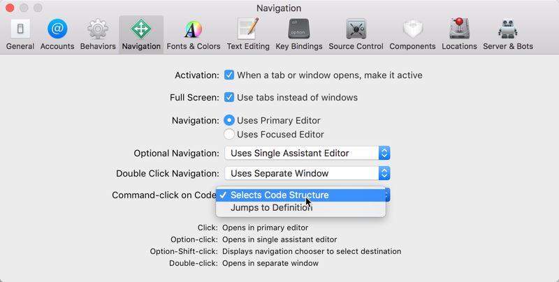 当然,如果你还是觉得以前的cmd+单击 跳转到变量定义,你更习惯,可以在