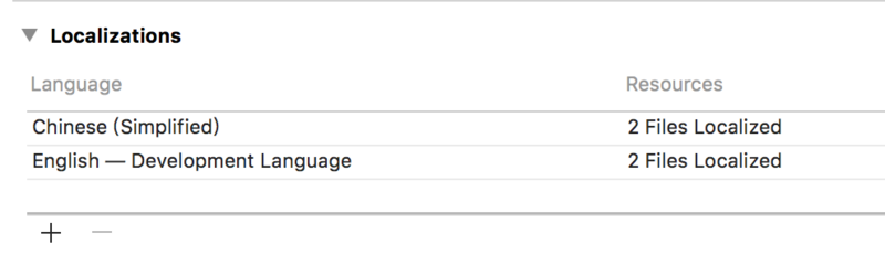 细心的朋友可能会发现,最后长按出来的文字都是英文,我们改如何把他改成中文呢?如图,在 Project -> Info -> Localizations 中添加 Chinese(Simplified) 即可。