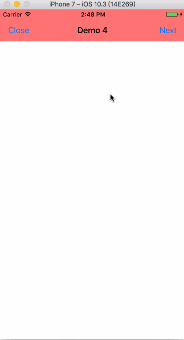 其实多数App都采用的前面提到的解决方案,但是类似于手QQ进入QQ空间的切换就没有这么处理(考虑可能是出于QQ空间界面的导航栏上拉还需要导航栏渐显而有意这么处理的),手QQ要实现的效果是从动态到空间导航栏从蓝色逐渐消失,而从空间回来则相反。实现这个过程其实最主要的是考虑手势返回时透明度的设置和返回进度保持一致,好在苹果已经提供了现成的api供我们调用,这就是self.transitionCoordinator.animateAlongsideTransition(in view: UIView?, animation: ((UIViewControllerTransitionCoordinatorContext) -> Swift.Void)?, completion: ((UIViewControllerTransitionCoordinatorContext) -> Swift.Void)? = nil),默认转场时会通过这个动画回调计算出block的中间插值,无论手势停留在哪一时刻都能确保动画插值保持一致,从而达到类似于QQ空间的手势切换效果。demo4演示了这一实现: