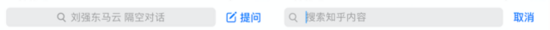 图中可以清楚看到知乎首页导航栏由2个button组成,搜索页面使用了textField,这类似上文提到的第三种思路。