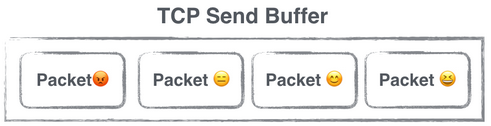 此处需要科普一点TCP协议相关的知识。我们通过HTTP请求发送数据的时候,实际上数据是以Packet的形式存在于一个Send Buffer中的,应用层平时感知不到这个Buffer的存在。TCP提供可靠的传输,在弱网环境下,一个Packet一次传输失败的概率会升高,即使一次失败,TCP并不会马上认为请求失败了,而是会继续重试一段时间,同时TCP还保证Packet的有序传输,意味着前面的Packet如果不被ack,后面的Packet就会继续等待,如果我们一次往Send Buffer中写入大量的数据,那么在弱网环境下,排在后面的Packet失败的概率会变高,也就意味着我们HTTP请求失败的几率会变大,类似这样: