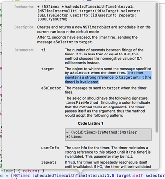 翻译:定时器保持着对target的强引用,直到定时器作废 那为什么LXFTimerView中的timer属性要用weak?? 不用着急,下面即将揭晓~
