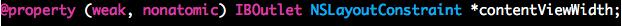 想要改变视图的宽度来实现动画效果,将这条约束拖到ViewController成为属性