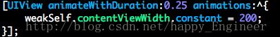 今天在做项目的时候,项目使用的是xib做的,页面中需要有个动画效果,使用UIView动画如下图: