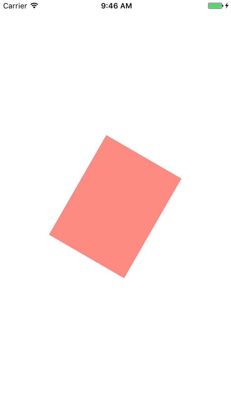 以上内容了解后我们需要直达frame本质上是一个复合的属性,也就是说他是由bounds position transform计算得到的(transform:放大,旋转等).为了证实这件事,我们将上面的有色View旋转一个角度.