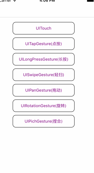 // (模拟器测试捏合和旋转手势时,按住 option 键,再用触摸板或鼠标操作)