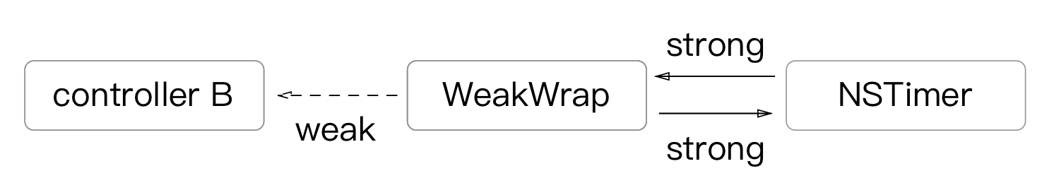 WeakWrap 中对 Controller B 弱引用,WeakWrap 包着 Controller B,传进 timer 中,就算忘记关 timer,也只是泄露了 WeakWrap 和 timer。