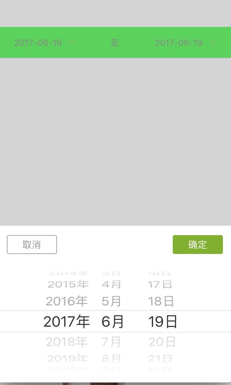 调起时间选择器, 传值(起始时间/截止时间), 两者时间均要合理, 不能超过未来时间, 并且起始时间不能大于截止时间. 点击取消或空白处收起时间选择器.