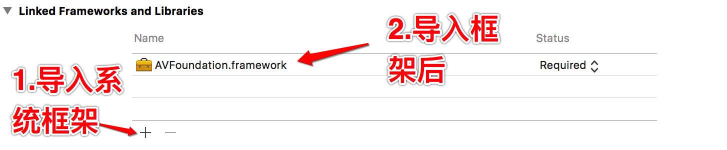 第一步:导入框架AVFoundation.framework