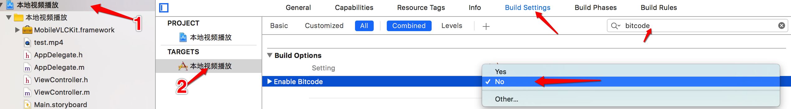 在工程设置中,Setting搜索bitcode,将Yes修改为No