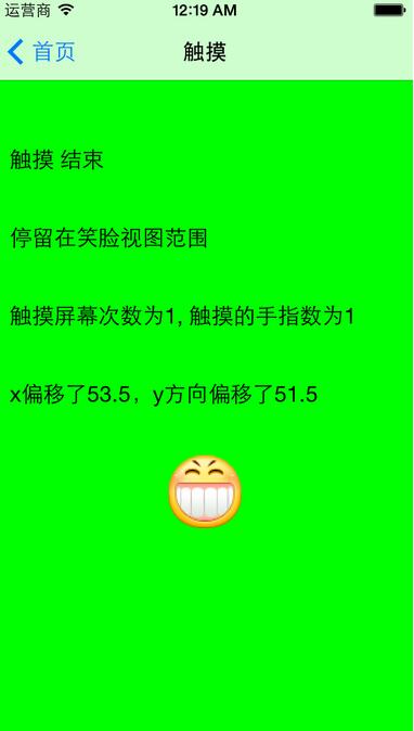 通过UITouch事件,可以监听到开始触摸、触摸移动过程、触摸结束以及触摸打断四个不同阶段的状态,在这些方法中,我们能够获取到很多有用的信息,比如触摸点的坐标、触摸的手指数、触摸的次数等等,下面通过一个小例子来说明一下。