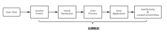 其实启动白屏的问题在Android原生应用上也是一个常见问题,大致是因为从用户点击 Launcher Icon 到应用首页显示之间,Android 系统在完成应用的初始化工作,其流程如下: