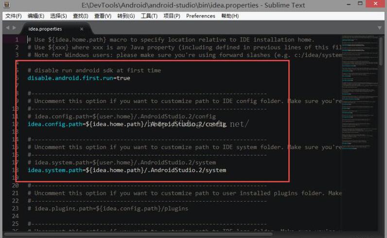 # ${idea.home.path}表示Android Studio程序的主目录,注意目录分隔符要用正斜杠“/”idea.config.path=${idea.home.path}/.AndroidStudio.2/config