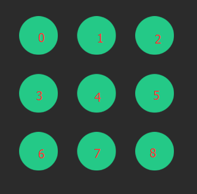 回调的方法里的passPositions是手势滑动的时候存储的九宫格的路径,对于九宫格路径的定义如图: