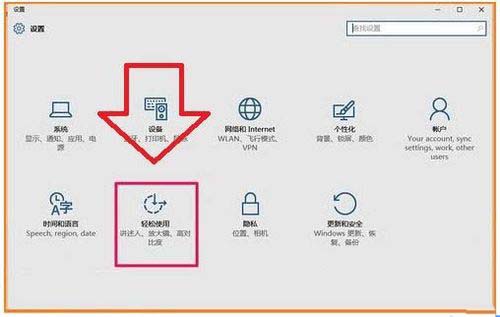 1、首先在win10中使用“Win+X”组合键调出“设置”窗口,然后在窗口中选择“轻松使用”选项;