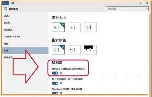 3、微软在win10操作系统加入各种实用功能,我们不仅可以对键盘的功能键设置,也可以设置鼠标、和其他选项功能,用户可以根据个人操作习惯和需求来设置win10数字键盘的按键功能。
