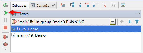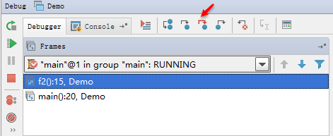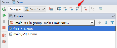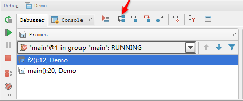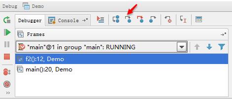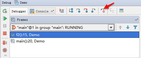 点击该按钮后,你将返回到当前方法的调用处(如上图,程序会回到main()中)重新执行,并且所有上下文变量的值也回到那个时候。只要调用链中还有上级方法,可以跳到其中的任何一个方法。