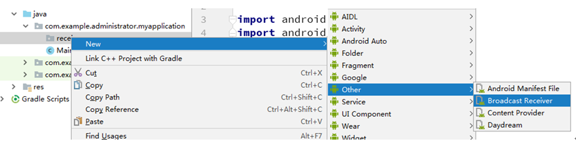 ①定义广播接受者