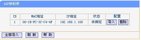 2.通过“ARP映射表”,导入条目,进行绑定。打开“ARP映射表”窗口如下:
