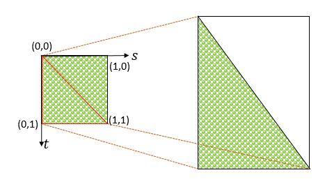 每个二维纹理都由许多小的纹理元素组成,类似与片元和像素,使用纹理最简单的方式就是直接从一个图像加载数据。在OpenGL中规定纹理图像的左下角由stst坐标(0.0,0.0)指定,右上角由stst坐标(1.0,1.0)指定,不过超过1.0的坐标也是允许的,在该区间之外的纹理在读取时的时候由纹理拉伸模式决定。