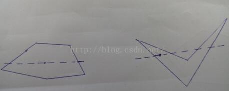 一切看起来那么合情合理,代码写完了,也测试了都没有问题啦!但是最后我发现忽略了一个问题,还有一种多边形的情况没有考虑到,那就是香蕉形的多边形,如图: