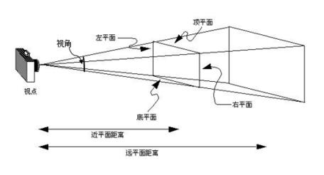 有两个函数可以生成透视投影矩阵frustumM和perspectiveM。参数具体含义可以参考下面的图