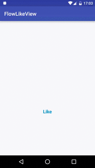 <com.anenn.flowlikeviewlib.FlowLikeView android:id="@+id/flowLikeView" android:layout_width="75dp" android:layout_height="200dp"> <TextView android:layout_width="wrap_content" android:layout_height="wrap_content" android:layout_alignParentBottom="true" android:layout_centerHorizontal="true" android:background="@android:color/transparent" android:includeFontPadding="false" android:onClick="addLikeView" android:text="Like" android:textColor="#0099cc" android:textSize="18sp" android:textStyle="bold" /> </com.anenn.flowlikeviewlib.FlowLikeView>