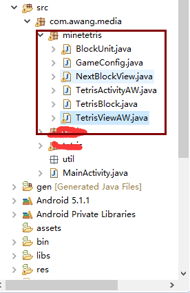 TetrisViewAW.java游戏的主界面,背景墙以及方块都在此TetrisViewAW.Java里面,就是一个自定义的View ,(默认大家对于自定义View是熟悉的),在改类里面,有一个游戏主线程,用于控制游戏的开始,暂停,继续,停止,以及方块下落的速率。代码我加了很多注释,看不懂的可以留言。还有一点需要注意,当停止游戏时,要释放线程,养成好习惯