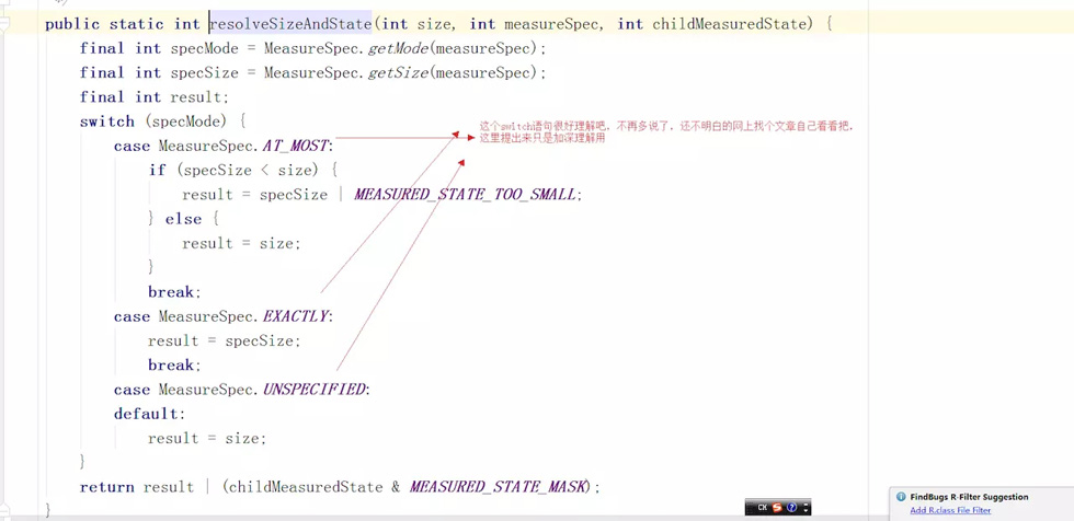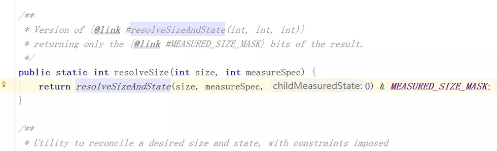 保存父view对子view的限制的方法也很简单直接调用resolveSize方法即可。