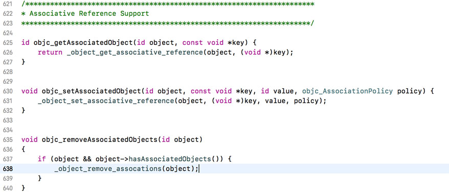 如此简单强大的功能,如果想要观察系统的实现,可以找关联对象的源码,我们可以从objc 源码中拿到,