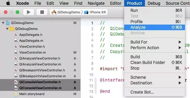 在iOS项目开发过程中,常用到静态分析(Analyze)、断点(BreakPoint)和控制台(Console)进行代码调试。本篇文章介绍Xcode常用调试方法之”静态分析“。