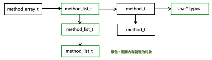 method_array_t继承于list_array_tt<method_t, method_list_t>,它是数组结构。存储的内容是method_list_t.